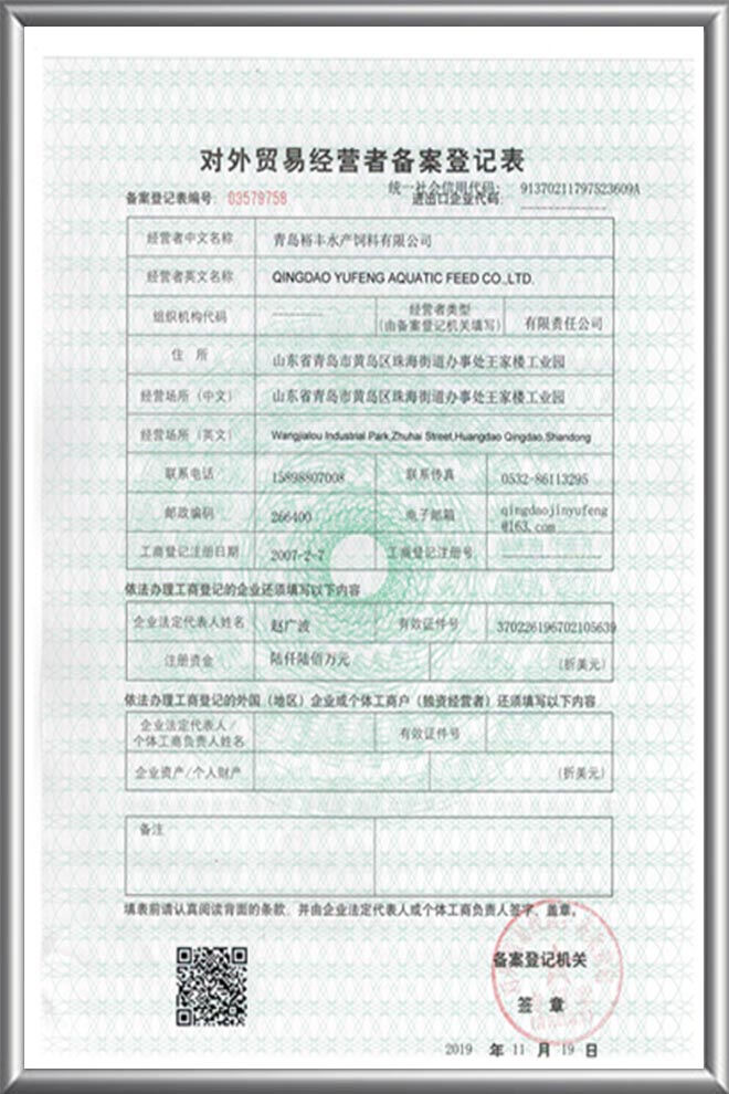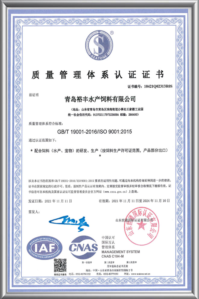 青島裕豐水產(chǎn)飼料有限公司是青島市黃島區(qū)一家具有進(jìn)出口資質(zhì)和《水產(chǎn)飼料生產(chǎn)許可證》的獨(dú)資公司。公司成立于2007年2月,位于風(fēng)景優(yōu)美的海濱城市——黃島區(qū)珠海街道王家樓工業(yè)園,地理位置優(yōu)越。公司設(shè)有生產(chǎn)區(qū)、辦公區(qū)及生活區(qū),主要從事海水、淡水養(yǎng)殖飼料的研發(fā)與生產(chǎn)經(jīng)營(yíng),以及海產(chǎn)品的深加工等多種經(jīng)營(yíng)。